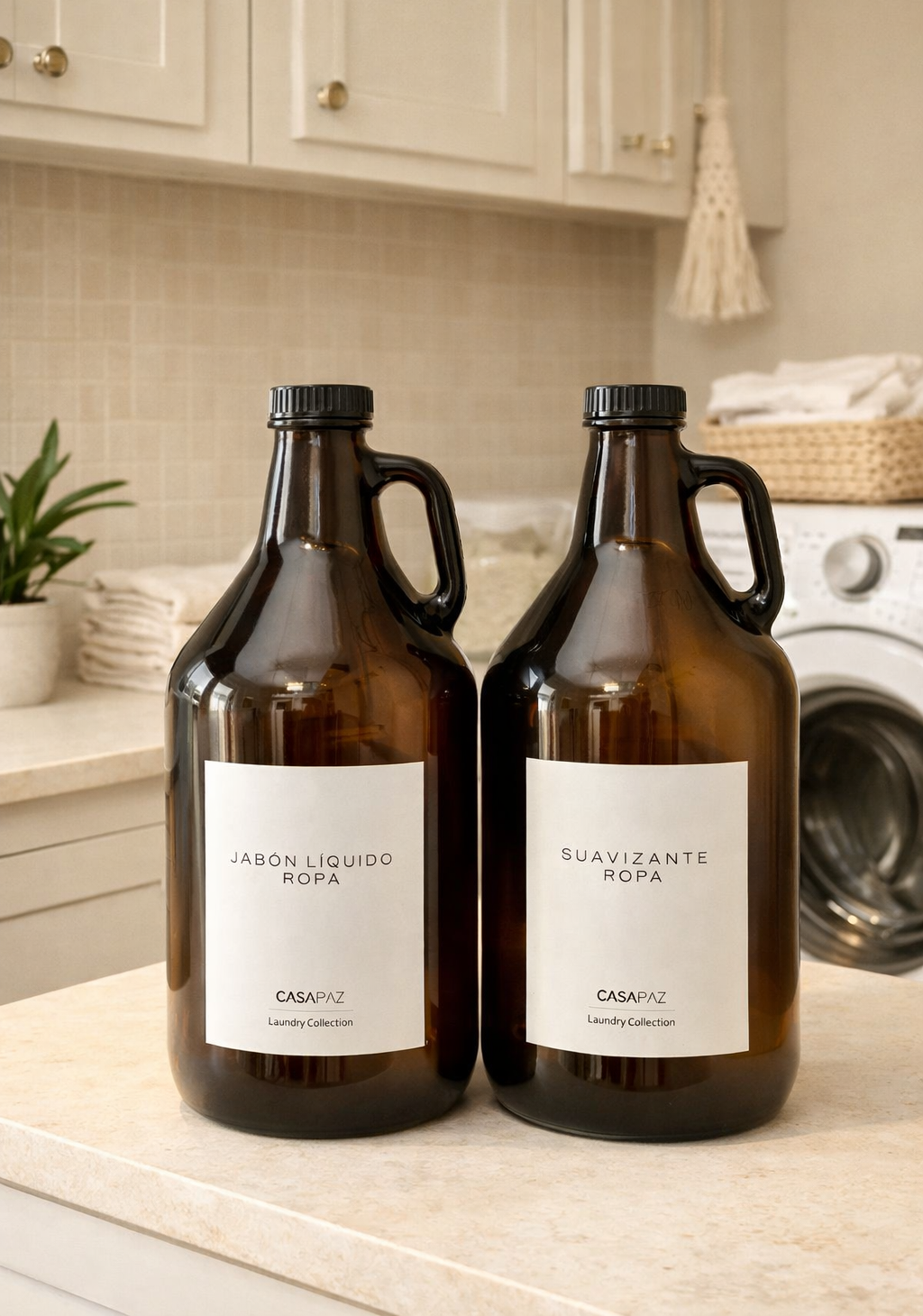 Ambos botellones son resistentes, reutilizables y fáciles de rellenar, ideales para mantener tus productos organizados, ahorrar espacio y reducir el uso de envases desechables.
